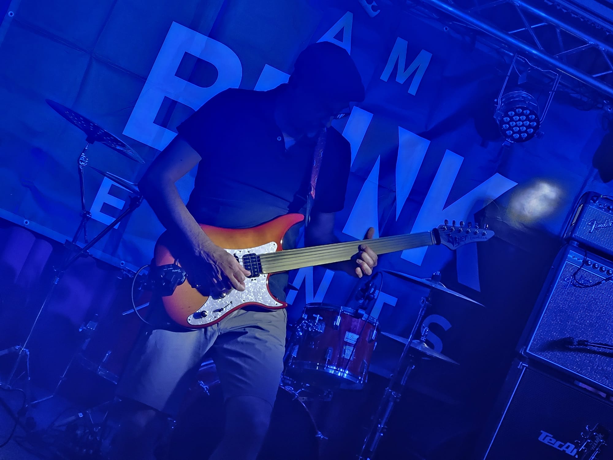 This was the first song I ever wrote on a fretless guitar. Every guitar you hear is my "Surfreter".